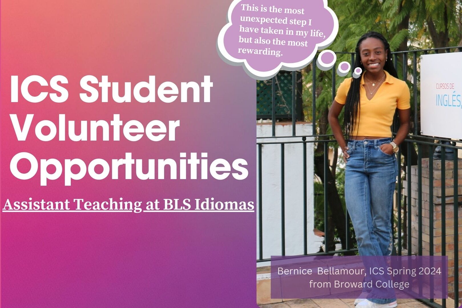 - Assistant teaching at a local language school (BLS Idiomas)