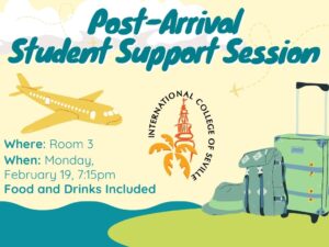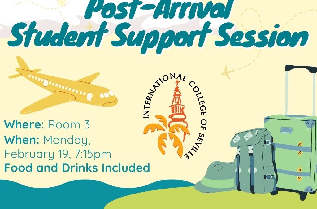 • This Monday will be our Student Support Seminar on Cultural Adaptation. It will take place from 7 – 8, in Room 3 of the ICS.